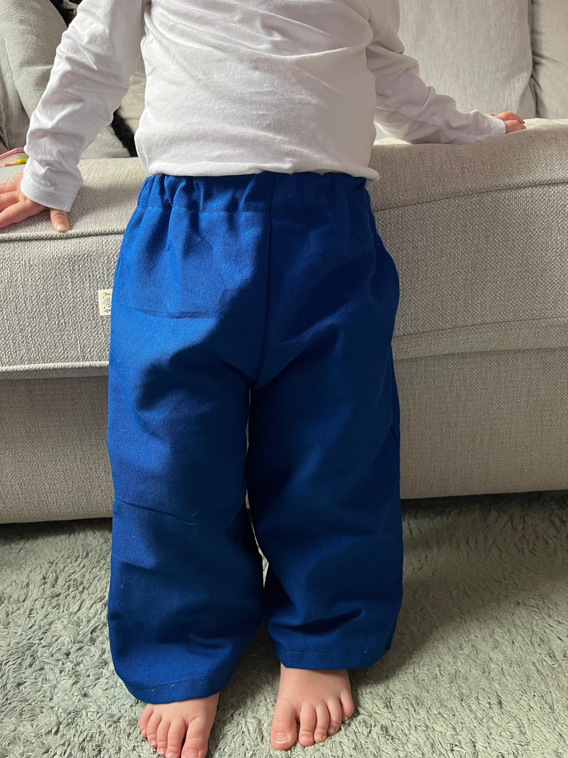Dark blue trousers handmade by Emanuel’s mama, Frida!💙Â